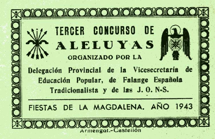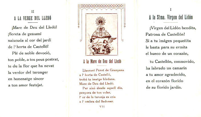 Año 1947 A la Stma. Verge dels Desamparats Premio del Excmo. Gobernador Civil del certámen literario organizado por la Casa de los Obreros de San Vicente Ferrer.