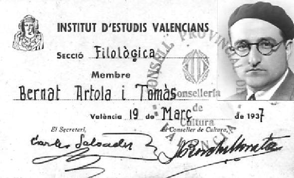 El 19 de Marzo de 1937, entra a formar parte del Institut d'Estudis Valencians, Secció de Filològia, siendo secretario Carles Salvador