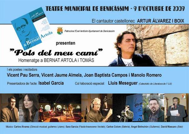 El día 9 de Octubre de 2009 el cantautor Artur Alvarez. i Boix y el colectivo "Artolià" de poetas en colaboración con el Excmo. Ayuntamiento de Benicassim presentan en el Teatro Municipal de Benicassim el doble CD "Pols del meu camí"