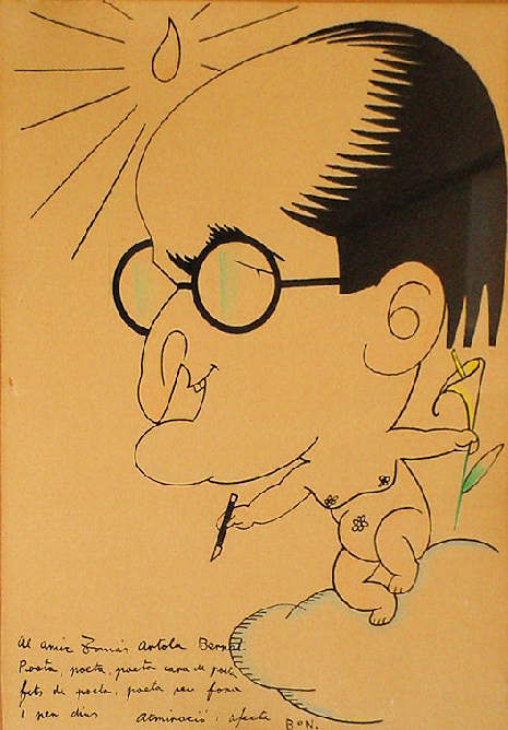 Con Paco Alloza y Ramón Bonet (BON) hacía caricaturas, con Porcar intercambiaba dibujos y poemas por pintura.