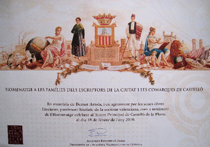 El día 18 de Febrero de 2010 se celebra en el Teatro Municipal de Castellón un Homenaje a "LES FAMILIES DELS ESCRIPTORS DE LA CIUTAT I LES COMARQUES DE CASTELLÓ", organizado por la Academia Valenciana de la Llengua y el Ayuntamiento de Castellón. En el trascurso del citado homenaje se presentó el libro "ANTOLOGIA D'ESCRIPTORS CASTELLONENCS" editado con la colaboración del profesor Lluis Meseguer.