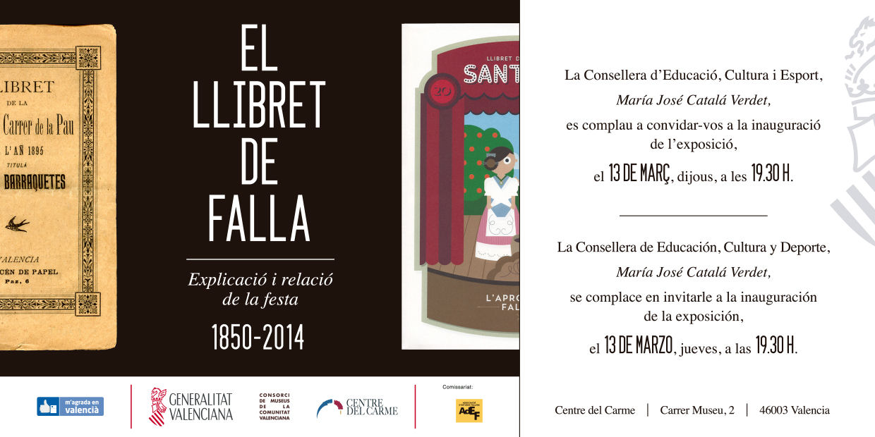 El 13 de marzo de 2014 se inauguró la exposición "El Llibret de Falla 1850-2014", organizada por la Subdirección de Política Lingüística de la Generalitat Valenciana, actuando como coordinador Josep Lluís Marín i García.