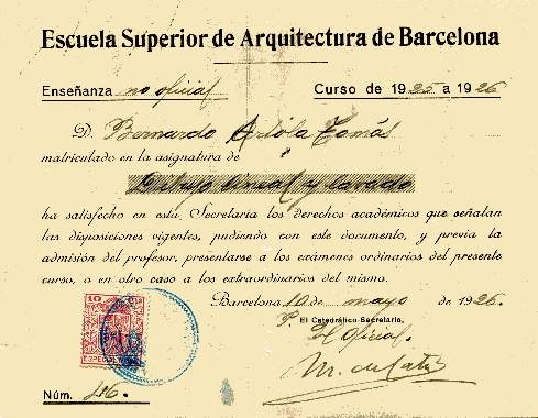 Curso 1925-1926 Escuela Superior de Arquitectura de Barcelona