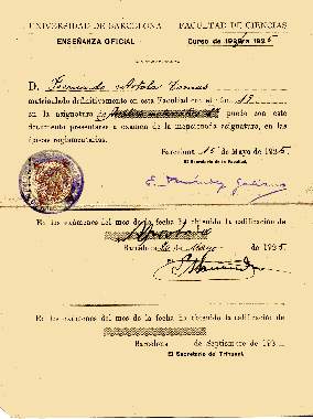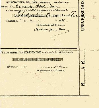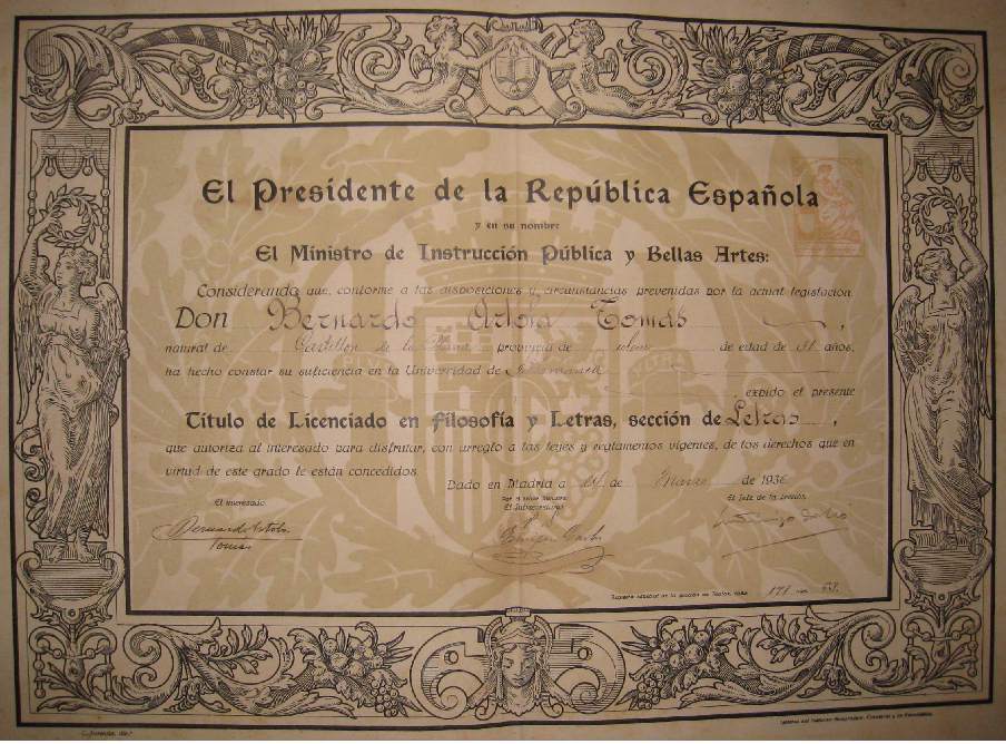 En enero de 1936 finaliza sus estudios con resultados remarcables. El 24 de Marzo de ese mismo año se le expide el título de Licenciado.