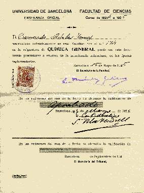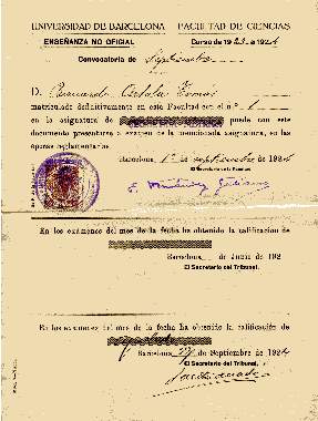 Curso 1923-1924 Facultad de Ciencias de la Universidad de Barcelona.