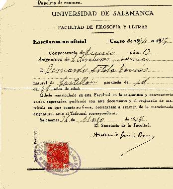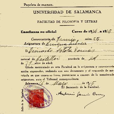 Curso 1924-1925 Facultad de Filosofía y Letras de la Universidad de Salamanca.