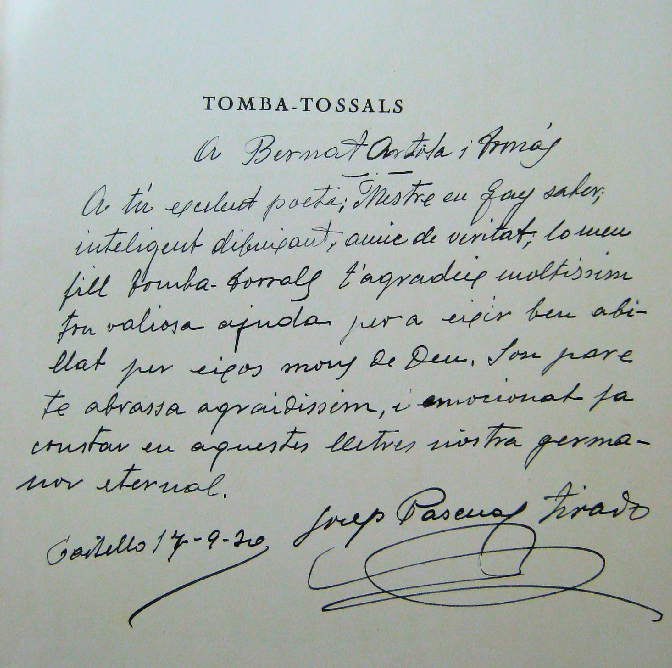 En el año 2012 se publicó el libro Paraula Encesa "Antoligia de poesia catalana dels últims cent anys", (pag. 174) a cargo de los profesores de la Universidad Autónoma de Barcelona Pere Ballart y Jordi Juliá.